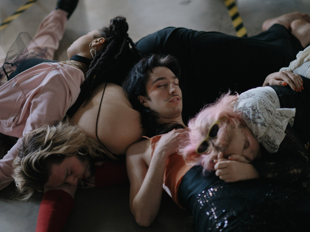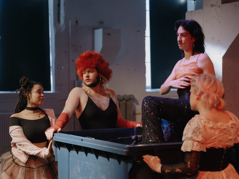 Text von Rinus Silze in einer Fassung für das Young Pathos Kollektiv. Mit: Josi Olufemi, Anna Wagner, Tareq Nassery, Pauline Peter, Joe Carbó. Ausstattung + Kostüm: Marie Jaksch. Lichtdesign: Noah Donker. Fotos + Video: Patrik Thomas, Marthe Schlüter